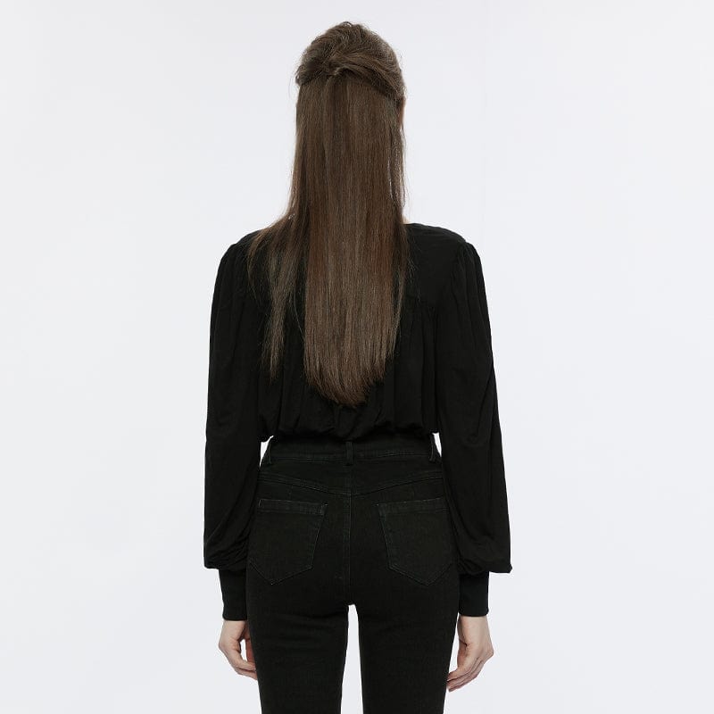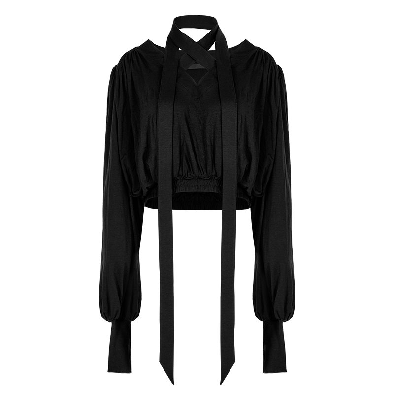 Women's Punk Strappy Puff Sleeved Plunging Crop Top