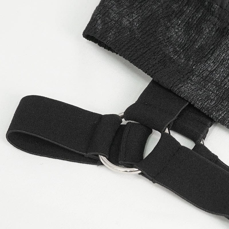 Women's Punk Turn-down Collar Cutout Studded Crop Top