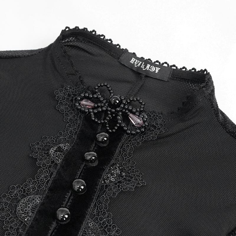 Women's Gothic Mesh Splice Beaded Split Dress