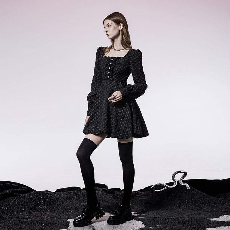 Women's Grunge Floral Printed Bud Hem Black Dress