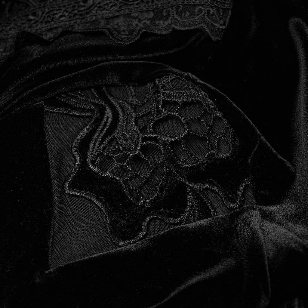 Women's Victorian Gothic Flare Sleeved Velet Black Little Dresses with Bow Tie