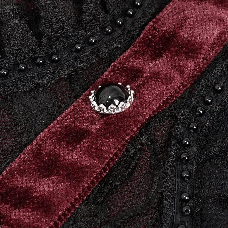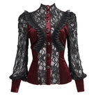 Women's Gothic Double Color Puff Sleeved Ruffled Lace Shirt