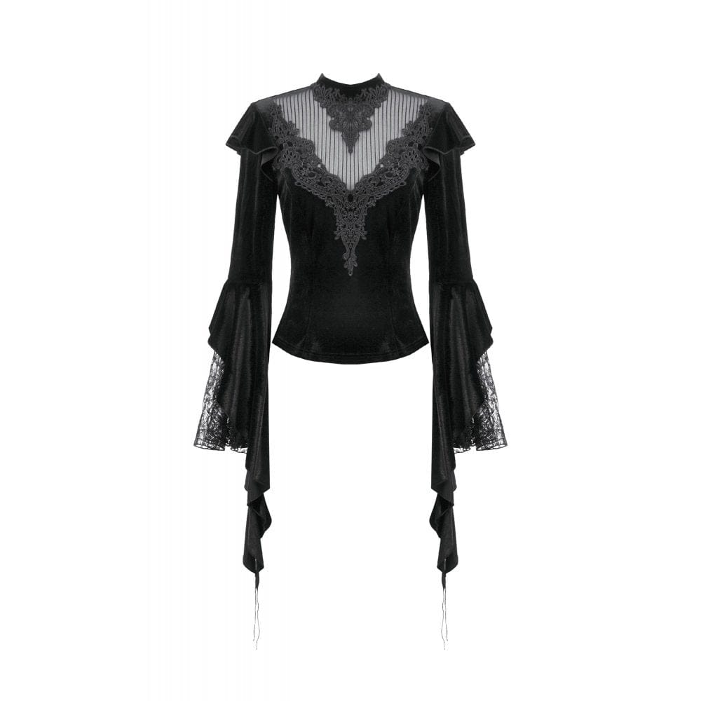 Women's Gothic Embroidered Mesh Splice Sheer Velvet Top