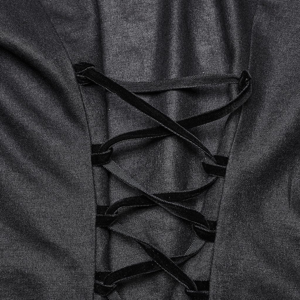 Lantern sleeves add to the shirt's dramatic effect, with their flared cuffs creating a sense of volume and movement. These sleeves offer a unique silhouette that combines with the ruffled collar to deliver a strikingly gothic appearance.
