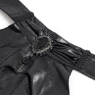 Crafted from high-quality faux leather, the texture is sleek and smooth, offering both durability and comfort. The soft, flexible material allows for ease of movement while maintaining its structured appearance. The design is both asymmetrical and dynamic, making it perfect for anyone looking to add a dramatic flair to their gothic, punk, or alternative wardrobe.