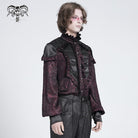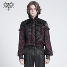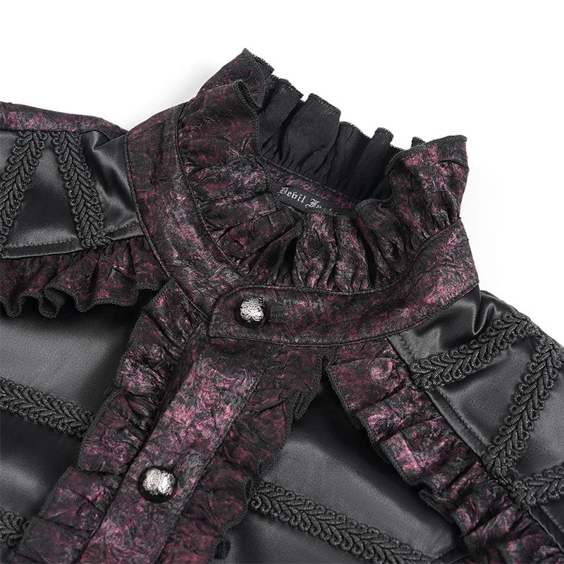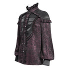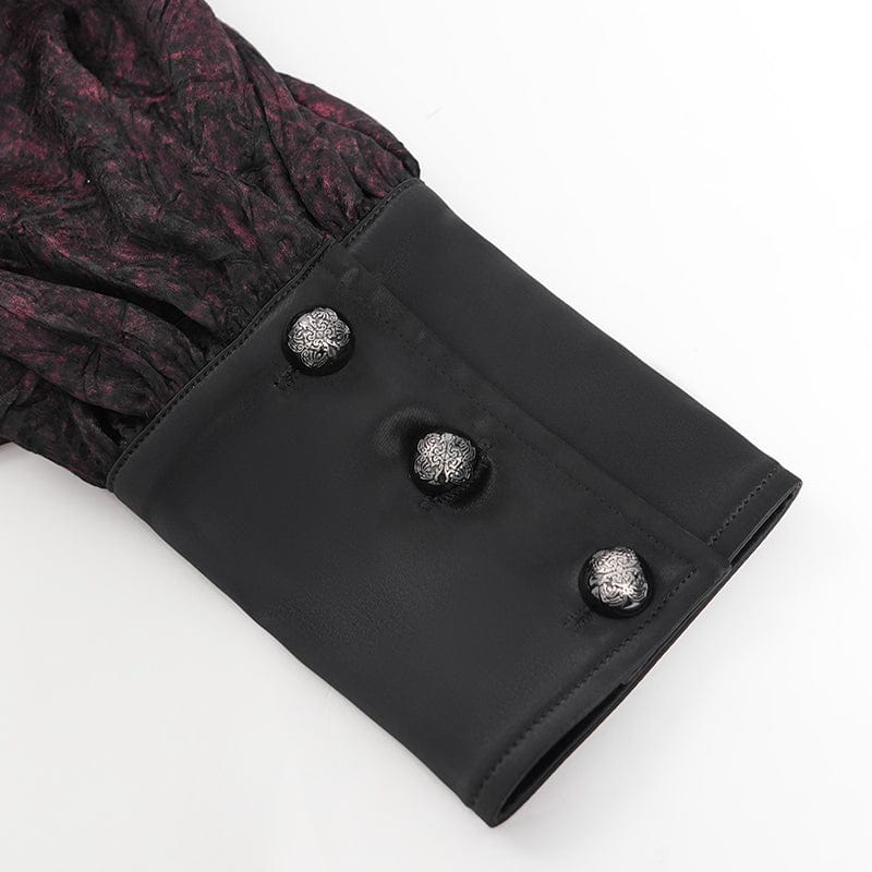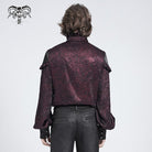 Men's Gothic Ruffled Stand Collar Puff Sleeved Shirt Red