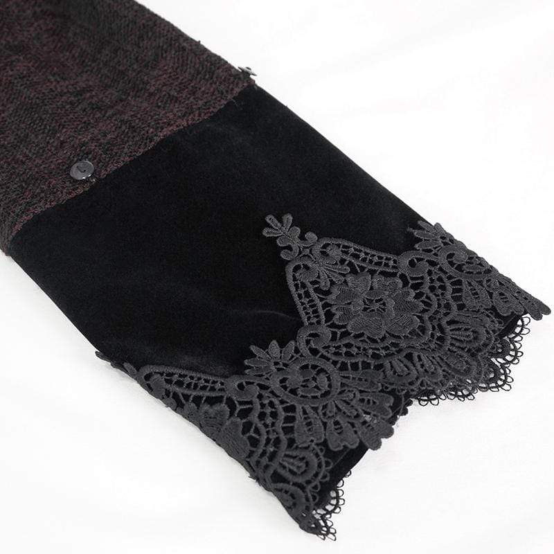 Men's Gothic Floral Zipper Red Coat with Detachable Faux Fur