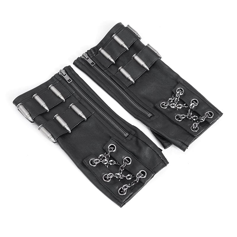Men's Gothic Bullet Zipper Fingerless Gloves