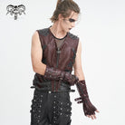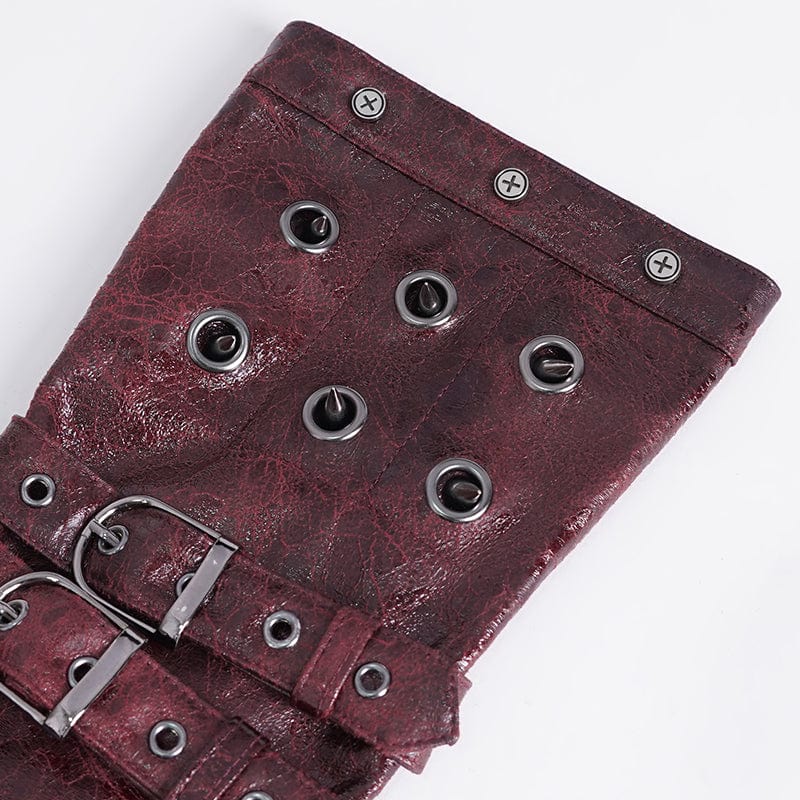 Men's Gothic Studded Mesh Splice Red Half-finger Gloves