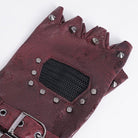Adding to the gloves' appeal are double buckle straps on the arm, which create a rugged and adjustable look. These straps not only serve a functional purpose but also contribute to the gloves' overall gothic grunge vibe.