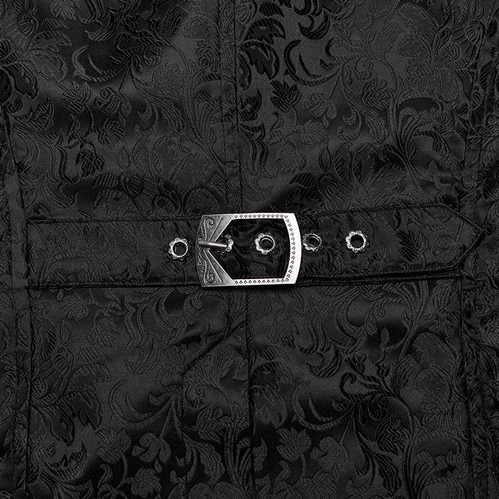 For closure, the vest features a button-up front with detailed buttons that complement the jacquard patterns and overall aesthetic. Each button is intricately crafted to enhance the gothic appeal of the vest.