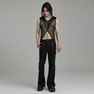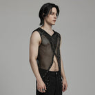 Men's Punk Irregular Eyelet Mesh Vest with Hood