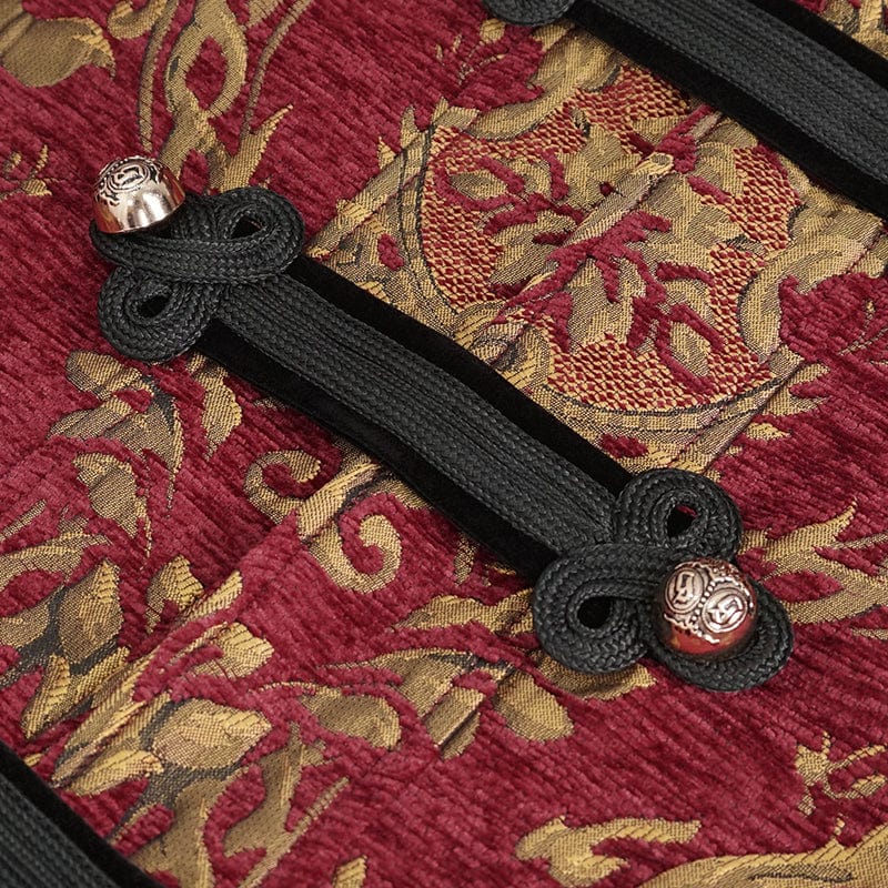 Men's Gothic Stand Collar Totem Embroidered Waistcoat Red