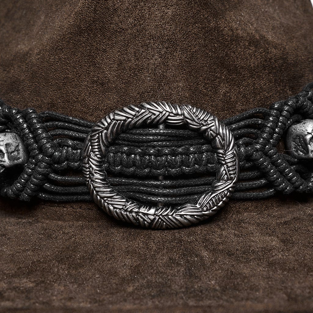Men's Punk Tassels Feather Skull Hat Coffee