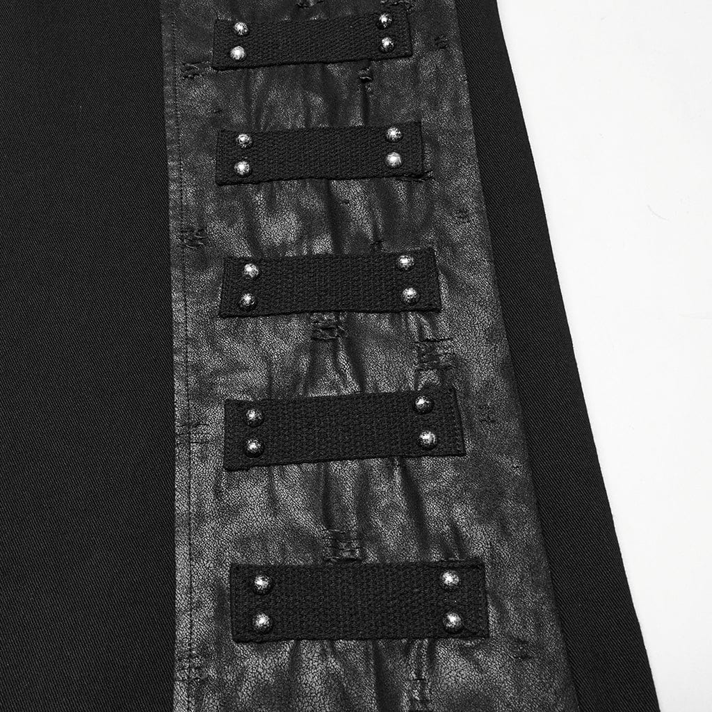 The loose silhouette of the pants gives them a laid-back, relaxed fit, accentuated by the sagging crotch, a signature punk look. The addition of straps along the sides, adorned with metal rings and fasteners, elevates the design, offering both an edgy visual appeal and functional utility. These straps are not just a statement—they enhance the pants' versatility, allowing you to adjust and customize the fit to your liking.