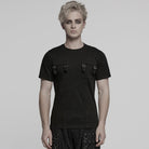 The design is completed with stylish shoulder ribbing, adding a touch of grunge texture to the shirt while elevating the overall look. Whether you’re pairing it with ripped jeans for an all-out punk look or layering it under a leather jacket for a more gothic rock vibe, this T-shirt is versatile enough for multiple occasions.