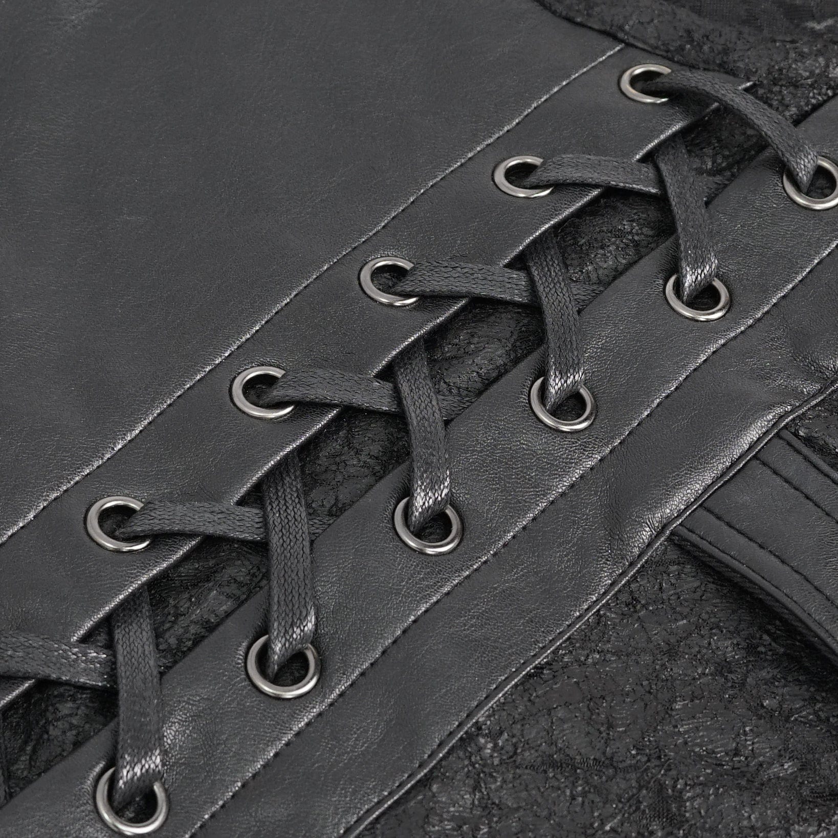 Men's Punk Buckle Splice Faux Leather T-shirt