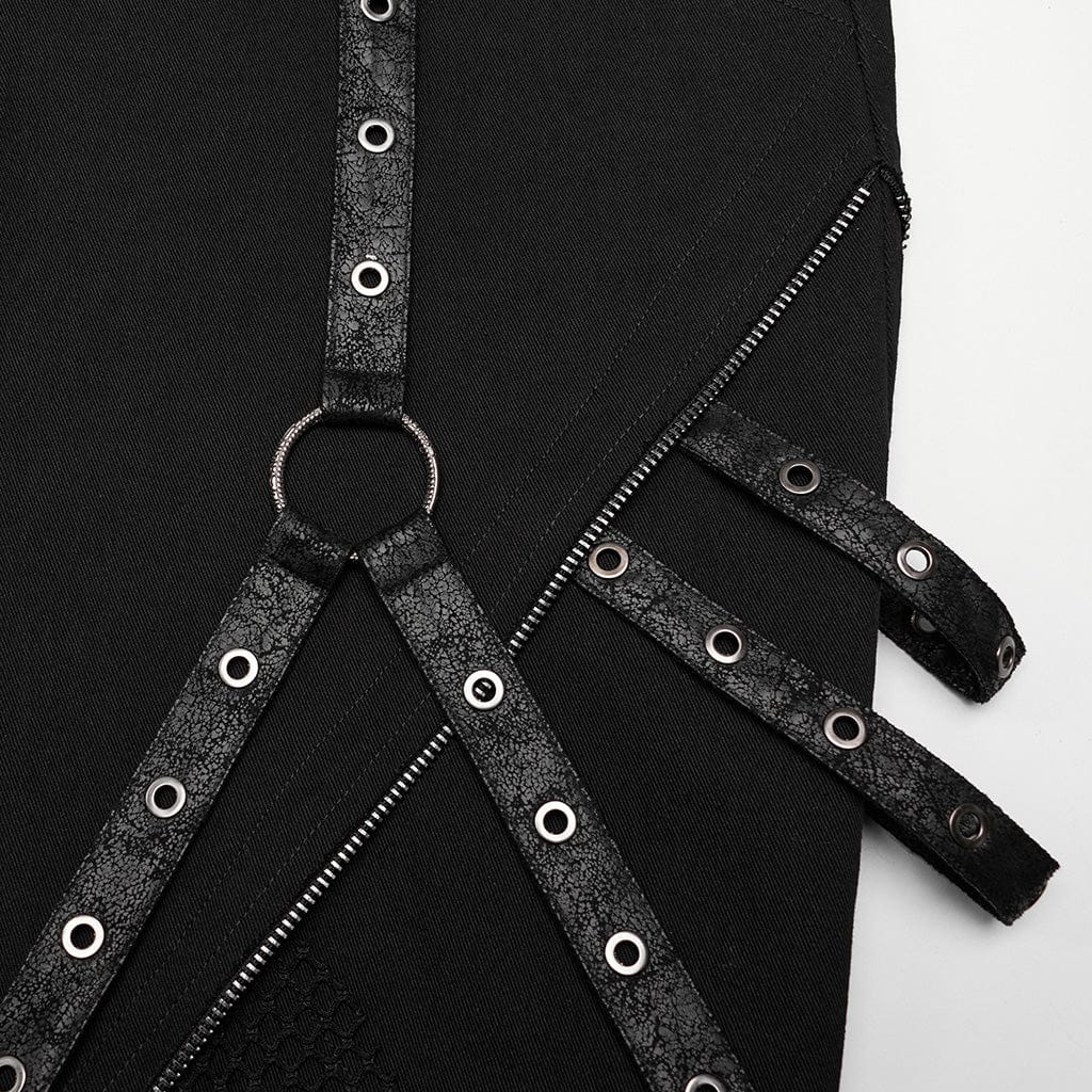 Men's Punk Mesh Splice Strappy Trousers