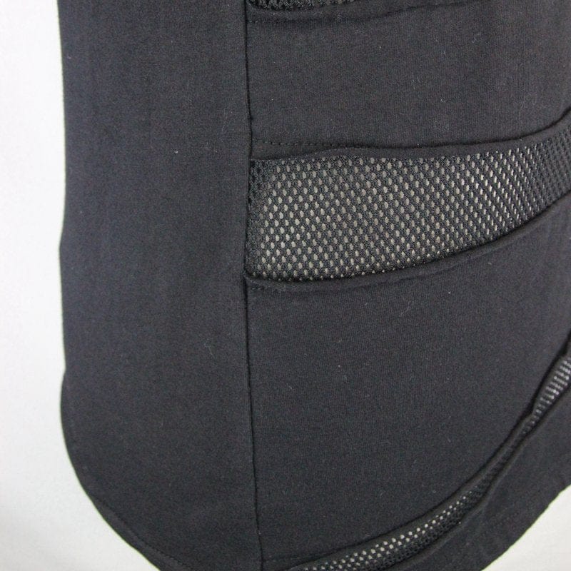 Description:The classic round neck t-shirt has got style with this mesh and solid banded t-shirt. The punk style t-shirt has all mesh short sleeves. It sports alternate bands of mesh and solid fabric that gives and interesting twist to this punk shirt. Cotton and spandex mixed fabric ensures a perfect close fit.