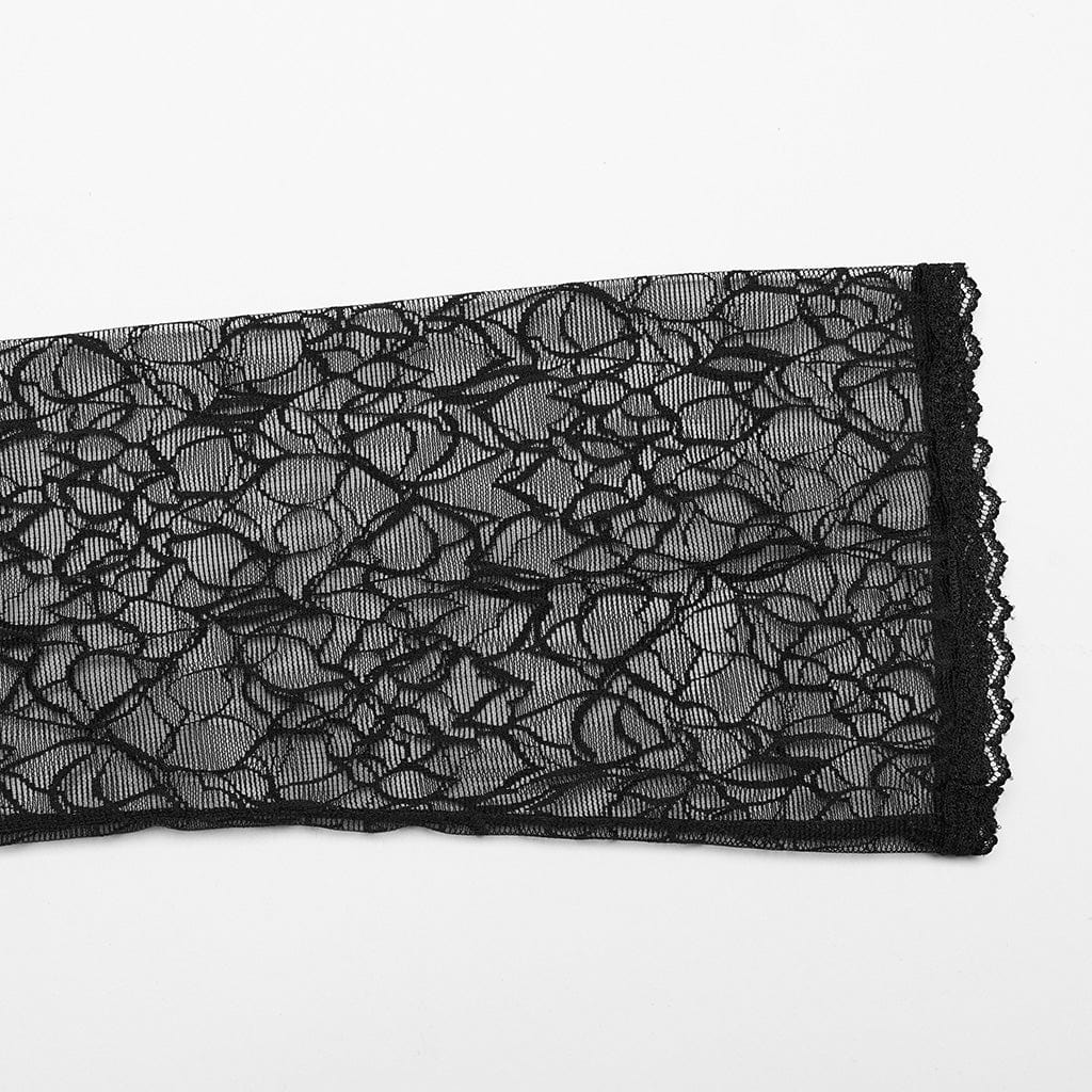 This gothic top is made of elastic floral pattern mesh. Butterfly embroidery on the front. Half-high collar design. Slim-fit silhouette and good elastic fabric.