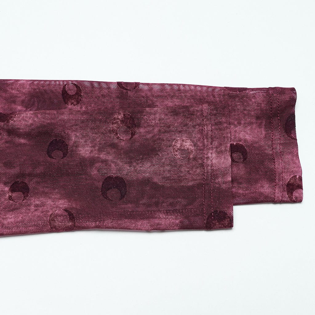 Women's Gothic Moon Printed Ruched Mesh Shirt Red