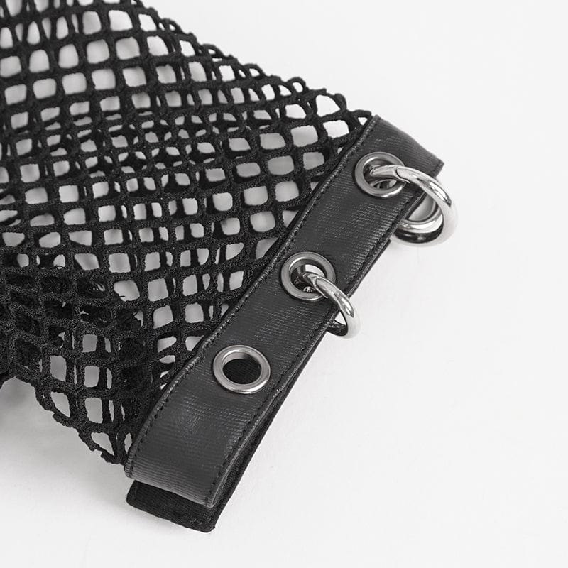 Women's Punk Mesh Rings Short Sleeved Mesh Top