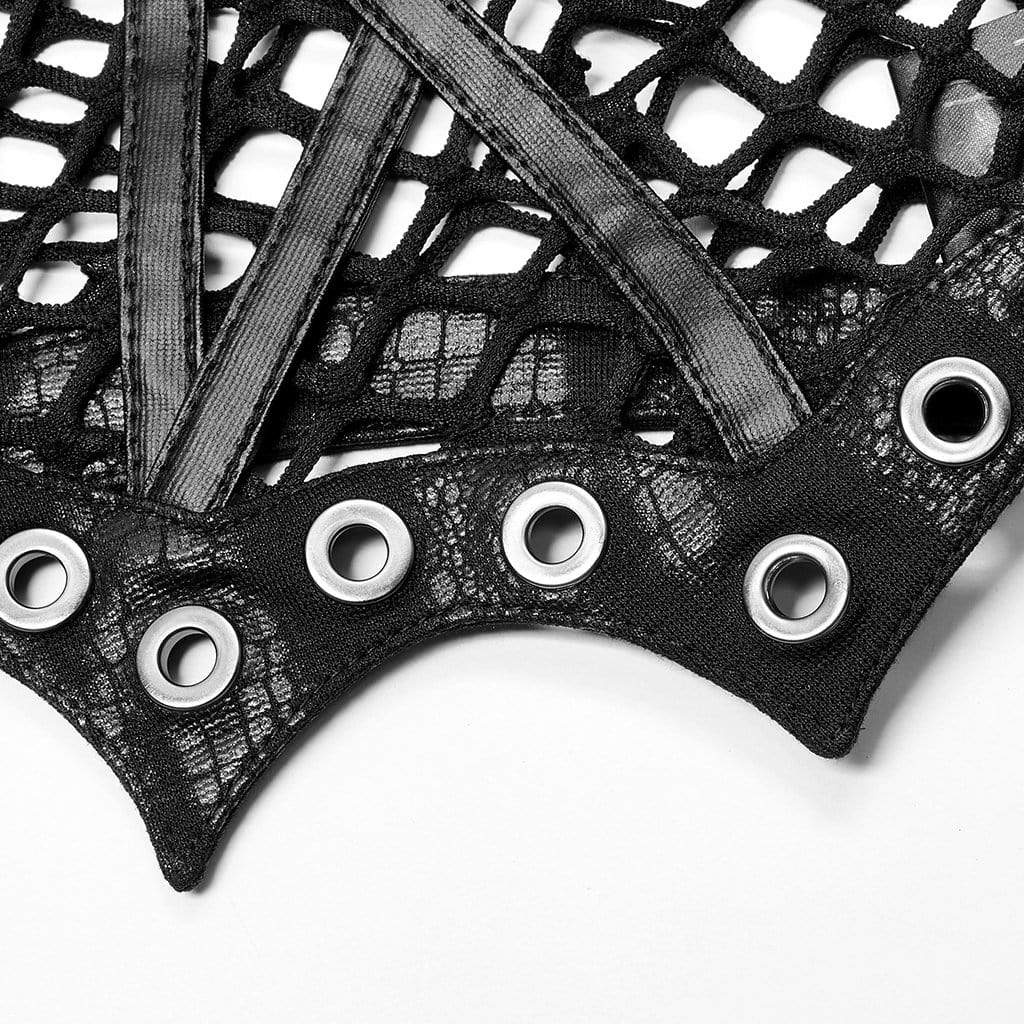 Women's Punk Turn-down Collar Mesh Splice Long Sleeved Crop Top