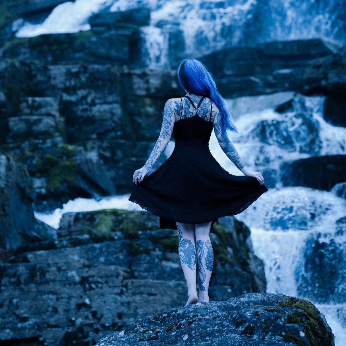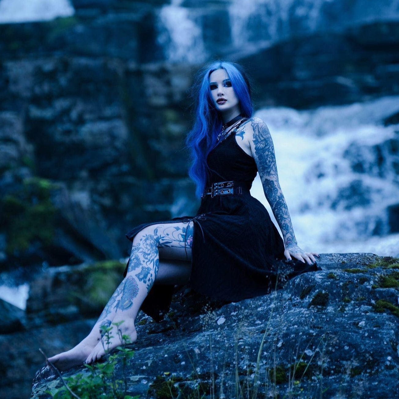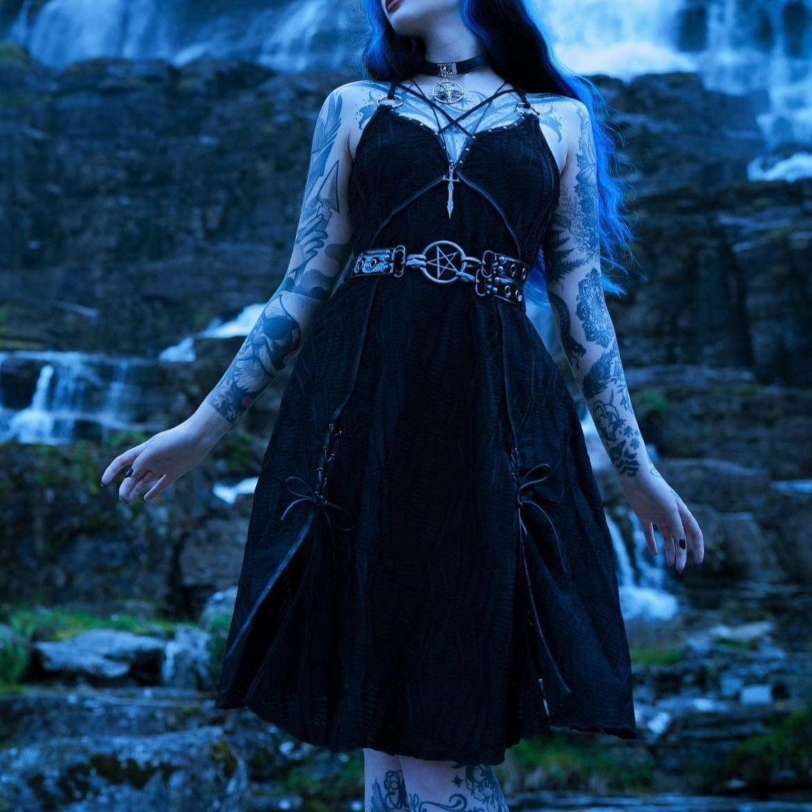 Women's Punk Stappy Plunging Side Slit Slip Dress