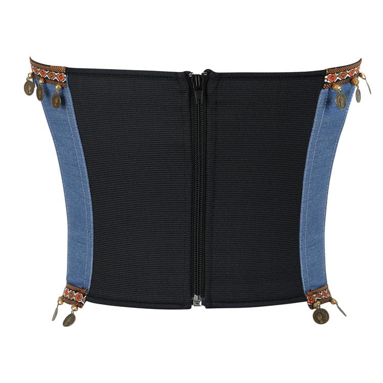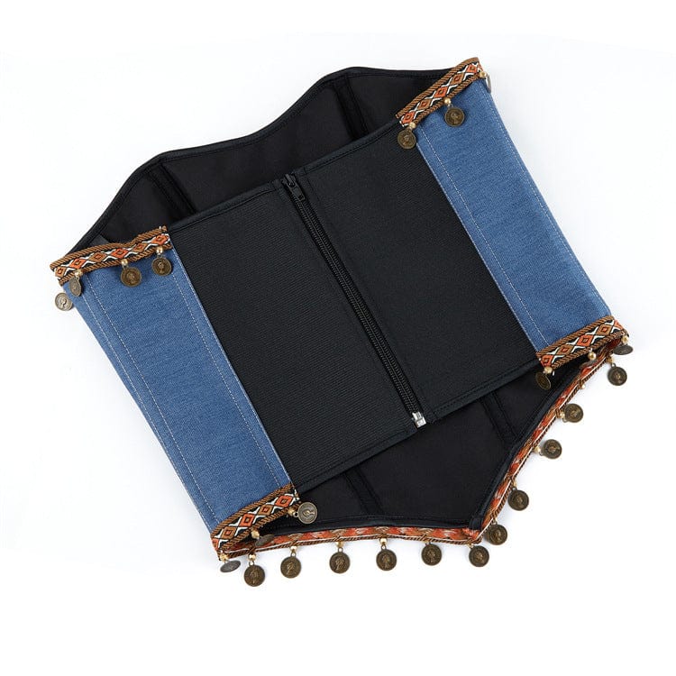 Women's Gothic Copper Piece Tassels Zip Overbust Corset