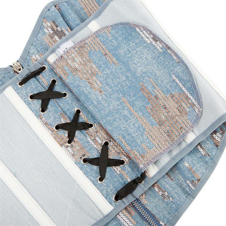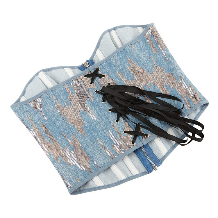 Women's Grunge Sequin Zipper Denim Overbust Corset