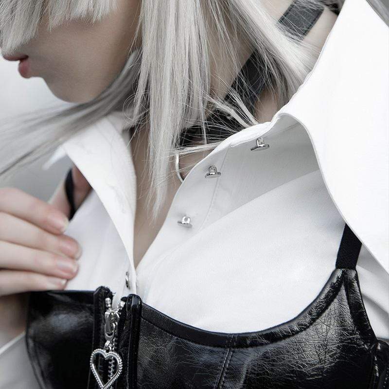 Women's Gothic High-waisted Shirt Dresses White