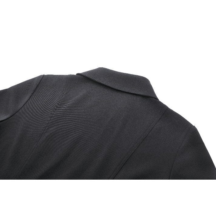 The dress features a distinctive turn-down collar adorned with eyelets, adding a touch of edgy charm and enhancing the dress's gothic aesthetic. The eyelets add a hint of metallic allure, creating visual interest and drawing attention to the neckline.