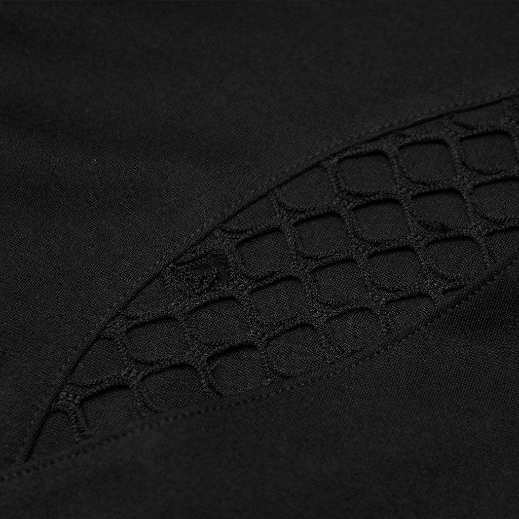 The punk style is always characterized by lots of belts and cutouts. And this dress is nothing short of that. A cutout on one shoulder, the detaching belt to the side, and the matching choker create a fashion piece.