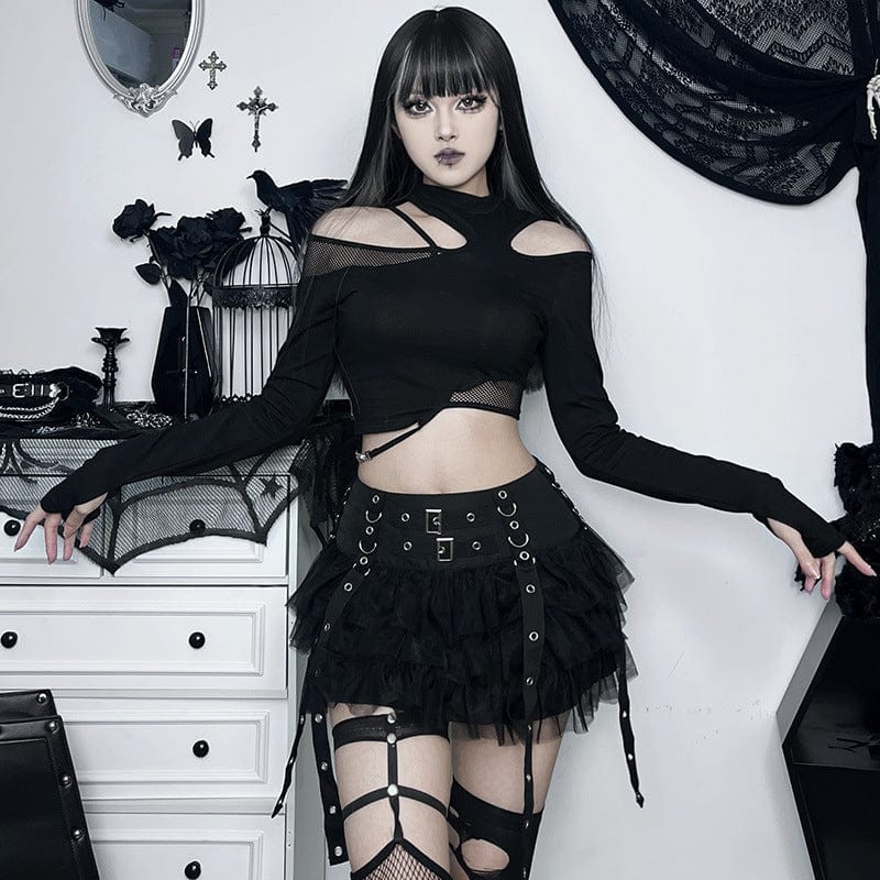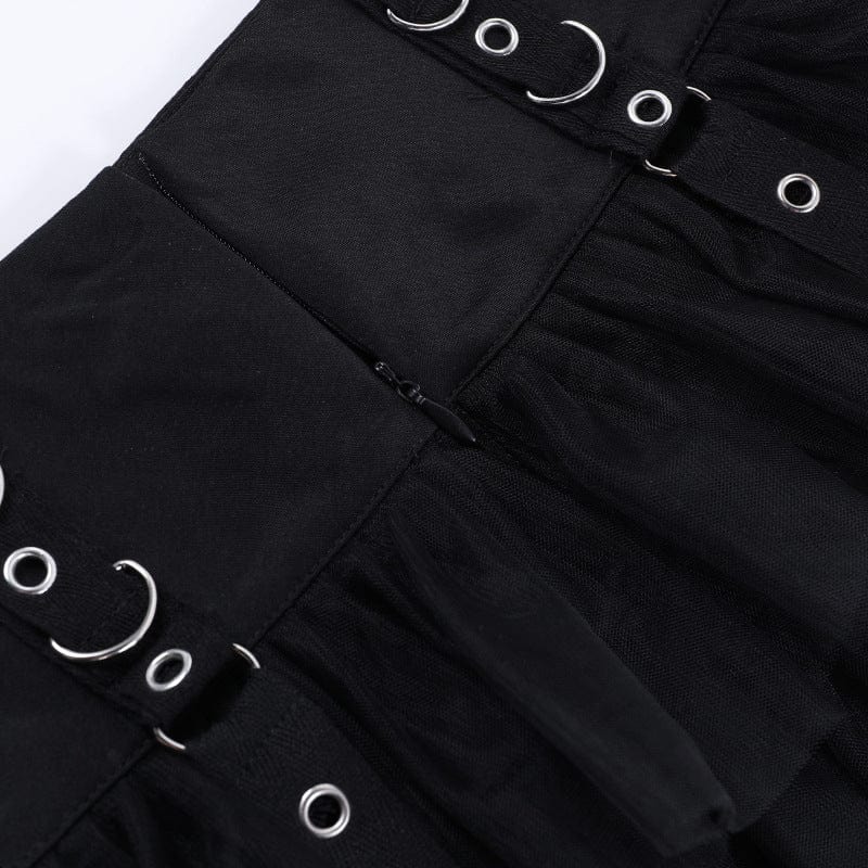 Women's Gothic Strap Splice Mesh Layered Skirt