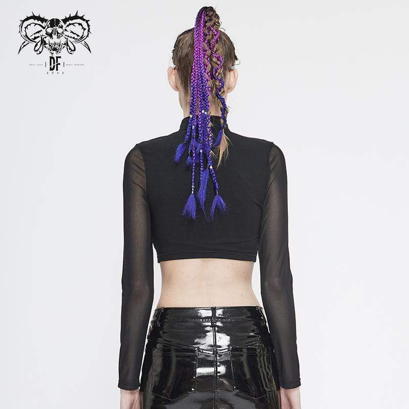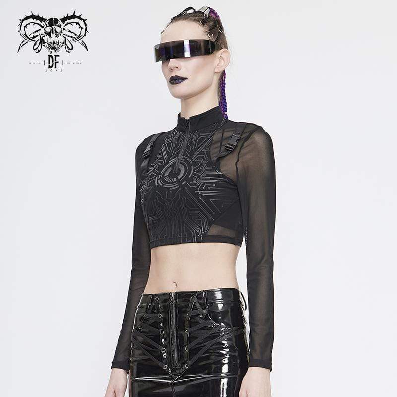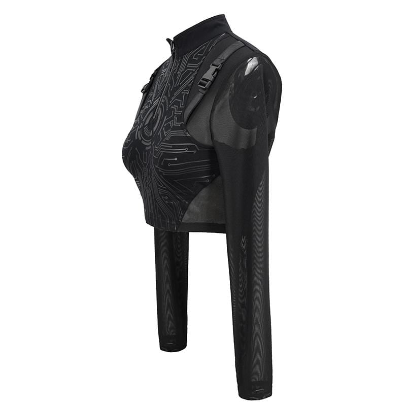 Women's Gothic Lace Overlay Scottish Check Short Puffed Sleeve Tops