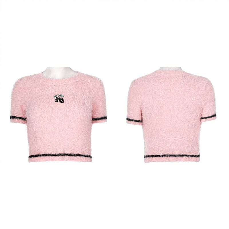 Women's Grunge Skulls Embroidered Fluffy Crop Top with Oversleeves