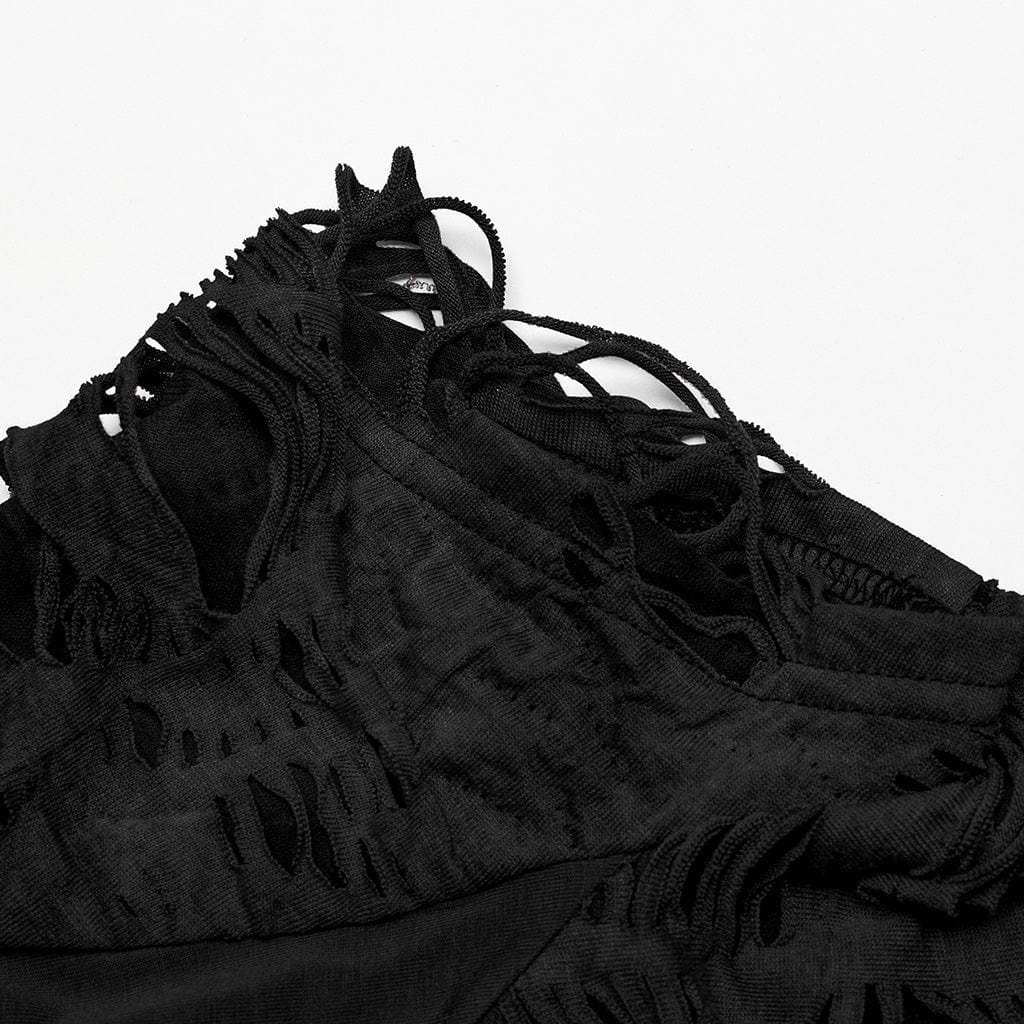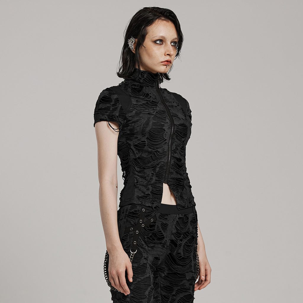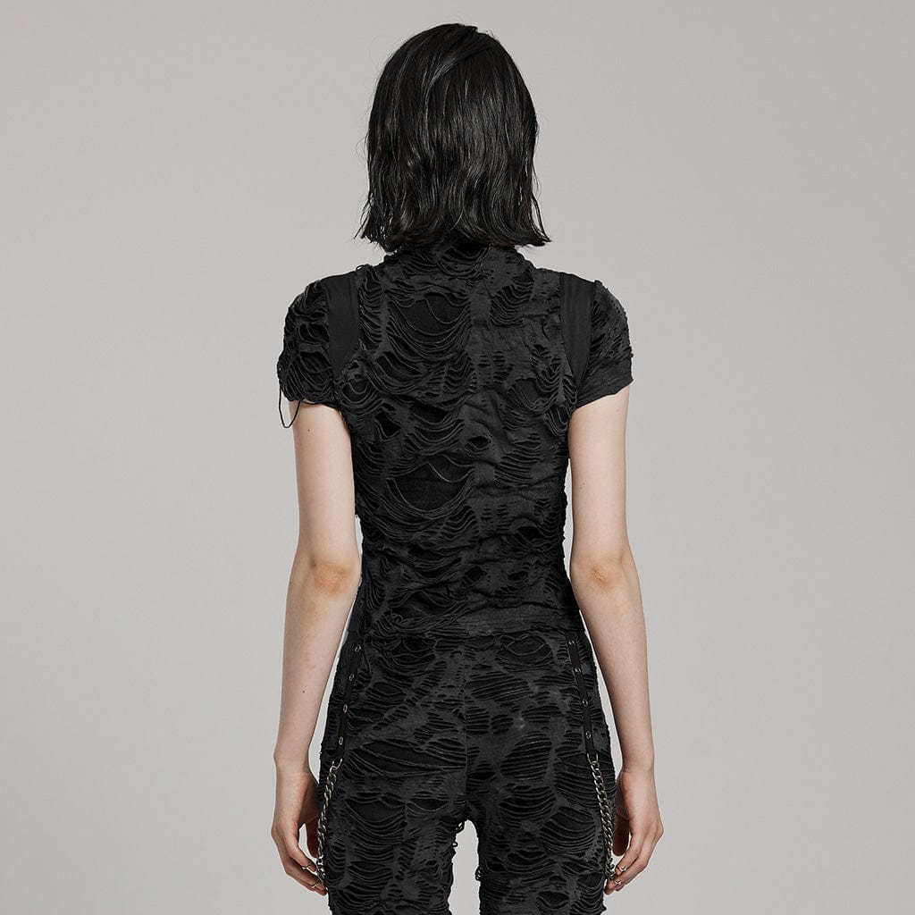 Women's Punk Ripped Distressed Short Sleeved Shirt Black