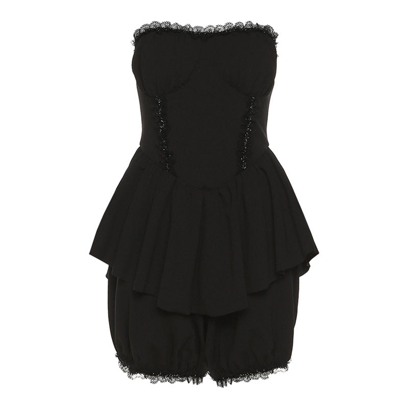 Women's Gothic Lace Off Shoulder Tank Top & Shorts