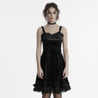 Women's Gothic Ruffled Lace Splice Gradient Velvet Slip Dress