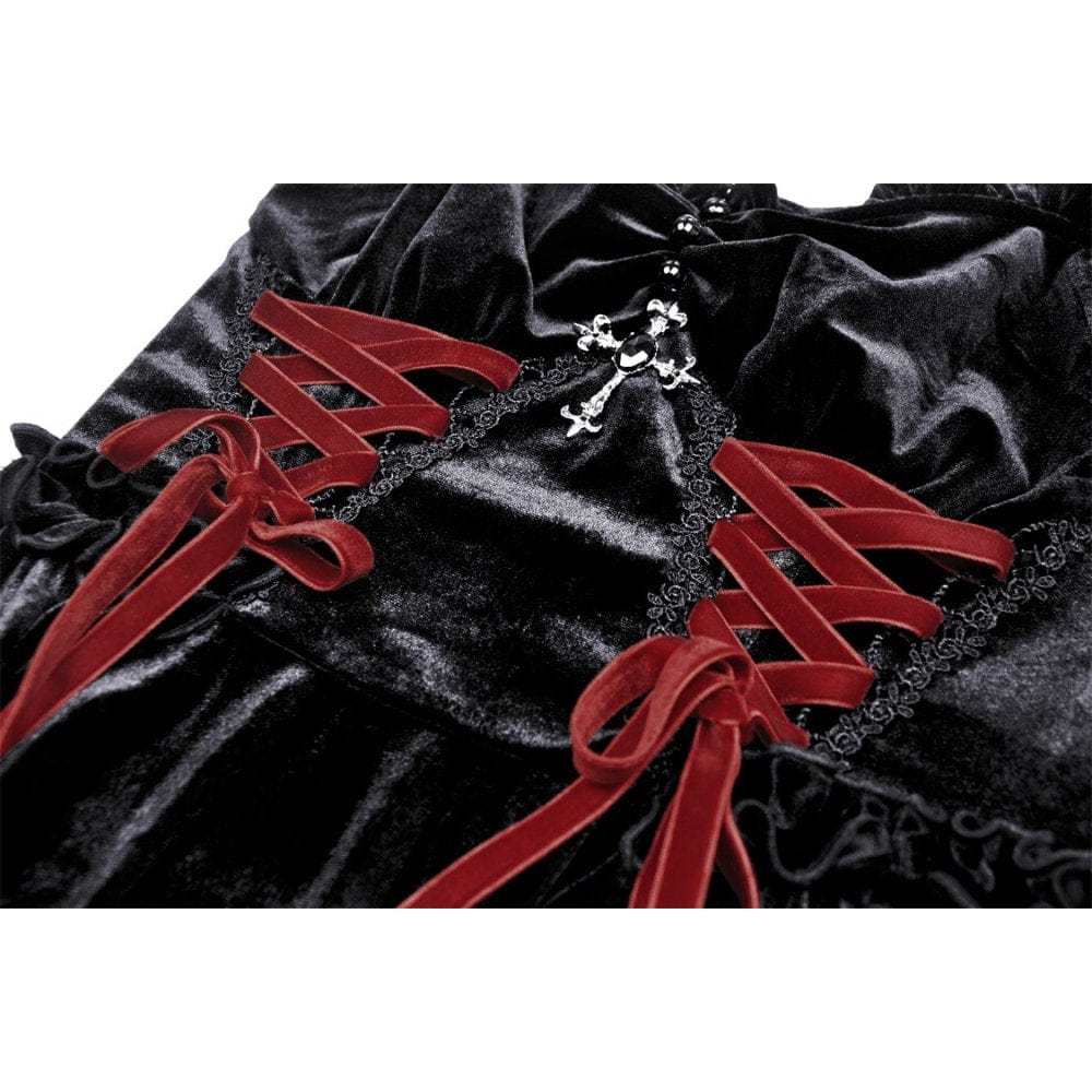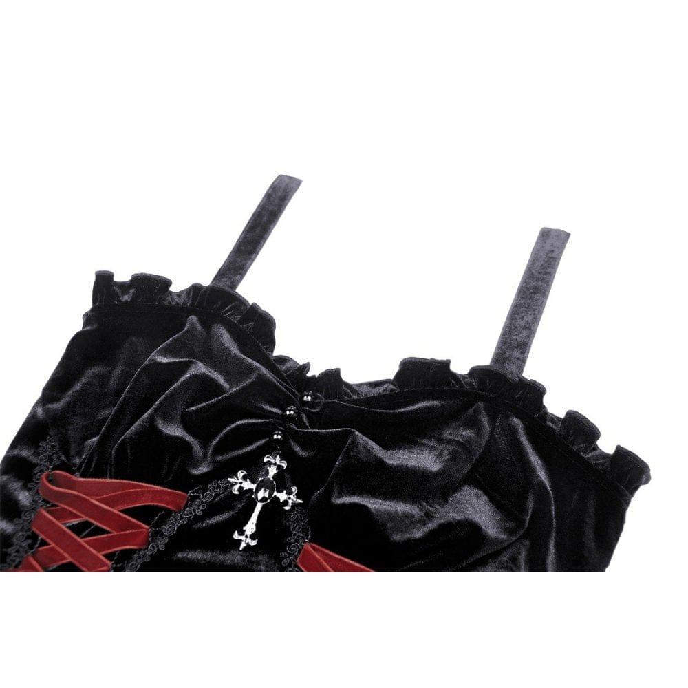 Women's Gothic Strappy Cross Velvet Slip Dress