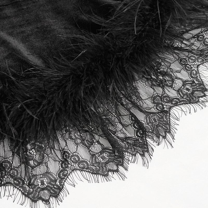 Women's Gothic Halterneck Fluffy Splice Velvet Dress