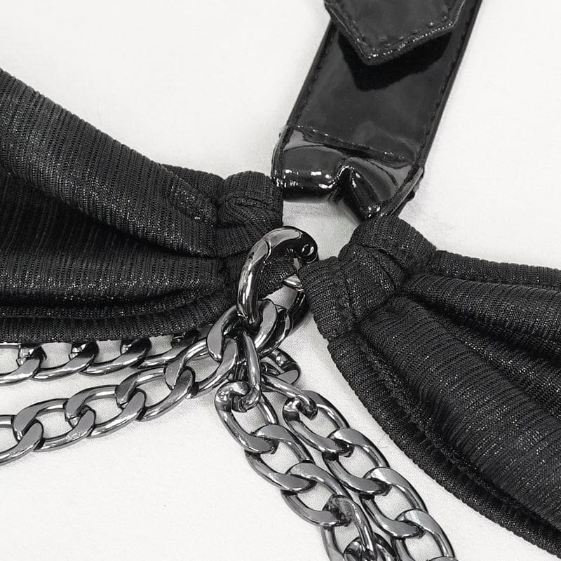 Women's Gothic Patent Leather Splice Bustier with Lingerie