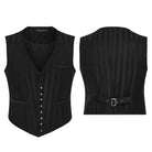 Men's Steampunk Striped Buckle Waistcoat Black