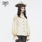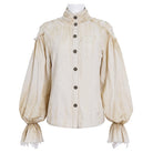 Women's Steampunk Stand Collar Puff Sleeved Beige Shirt