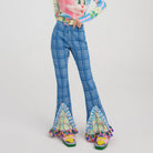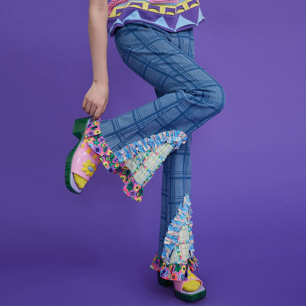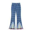 Women's Ruffled Splice Plaid Flared Pants