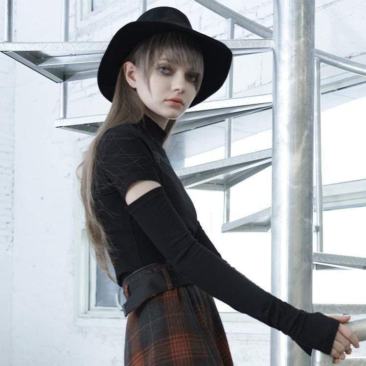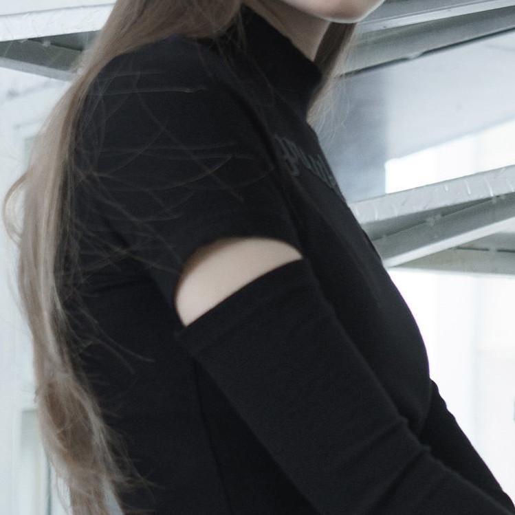 Women's Stand Colalr Long Sleeved Cutout Letters T-shirts