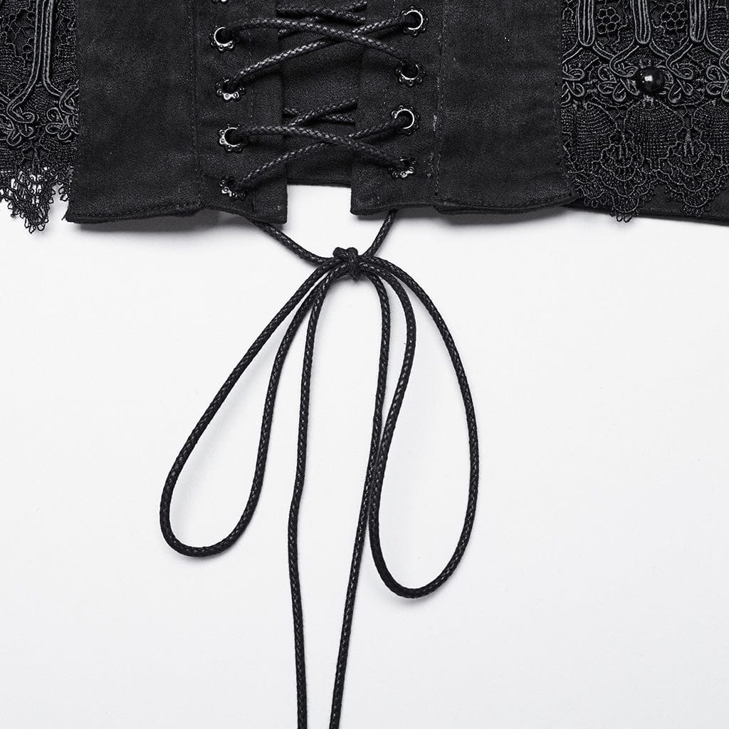 Step into gothic elegance with the Women's Gothic Beaded Lace Lace-up Underbust Corset, a meticulously crafted piece that combines luxurious materials with intricate detailing. This corset is made from a rich blend of suede and mesh, offering a sophisticated texture that enhances its gothic allure.