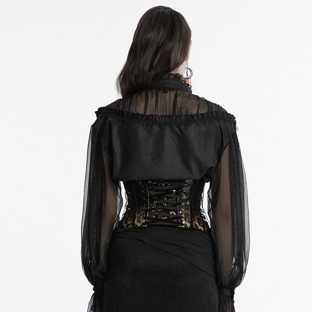 Women's Gothic Leopard Patent Leather Underbust Corset Coffee