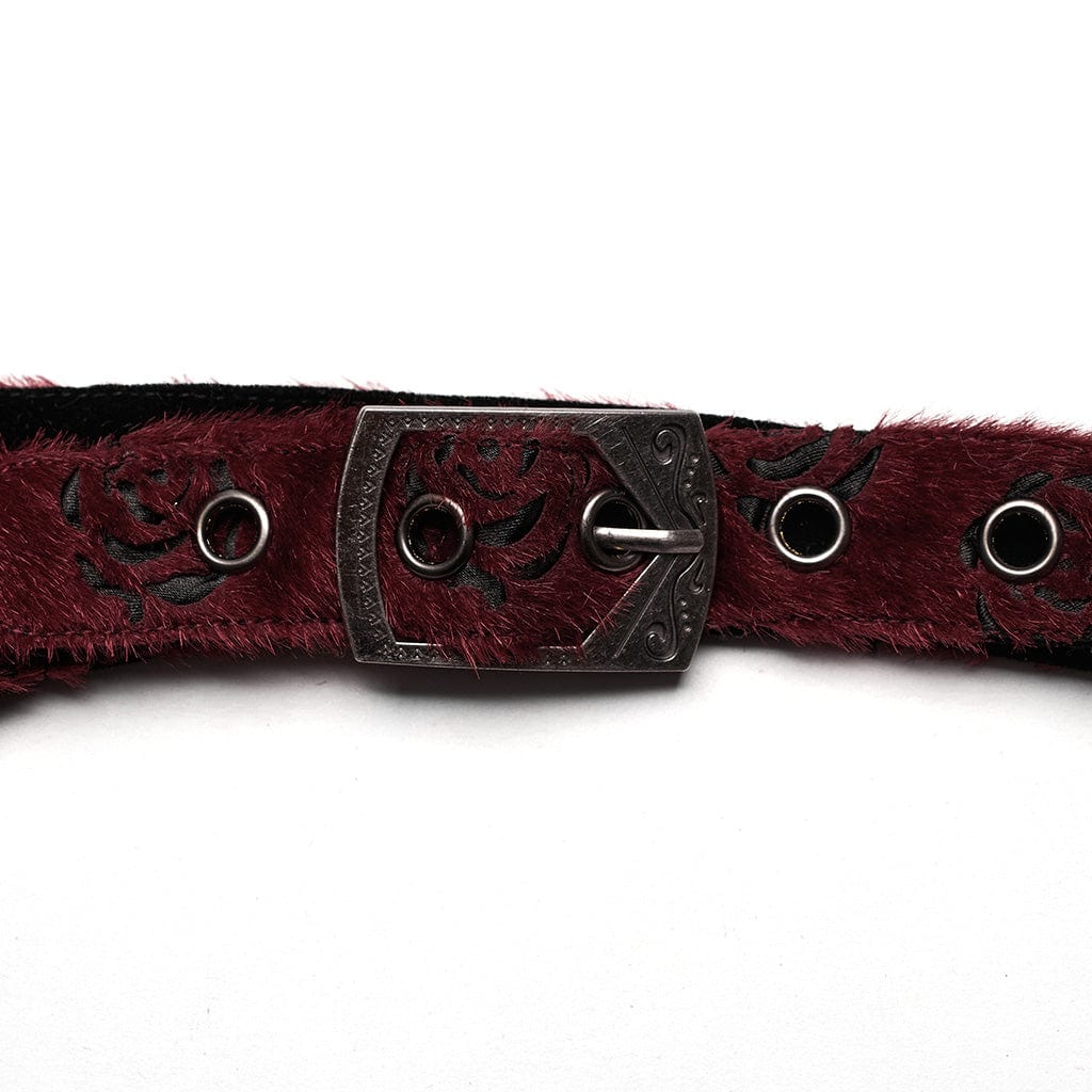 This gothic underbust corset is made of laser horse faux wool fabric with rose cutout design. Decorative lace string in front. Adjustable shoulder strap. Zipper on the side for put on and off. Lace-up on the back for adjustment. No elastic fabric.