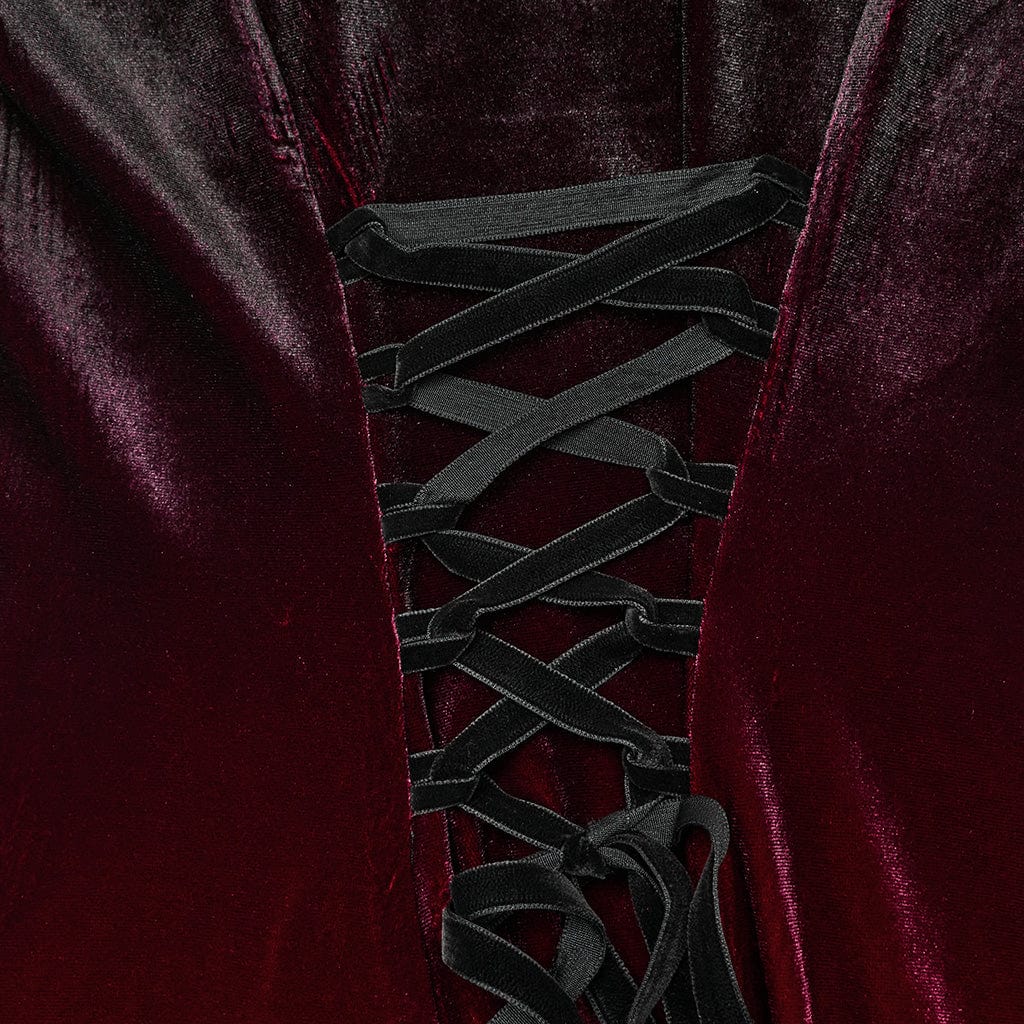 This dress is perfect for making a bold statement at any gothic prom, evening event, or special occasion. Its combination of luxurious velvet, intricate lace detailing, and carefully designed silhouette make it a piece that stands out in any wardrobe, blending the allure of gothic fashion with the elegance of a classic prom dress.